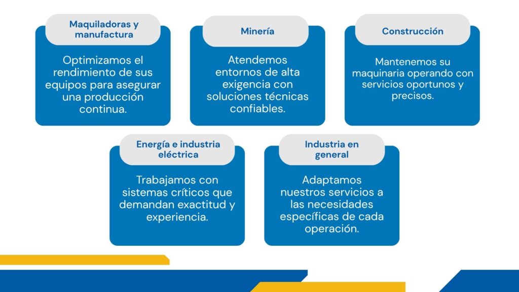 En Reser S.A. de C.V., brindamos soluciones especializadas a sectores industriales que requieren continuidad operativa, eficiencia y confiabilidad en cada proceso.